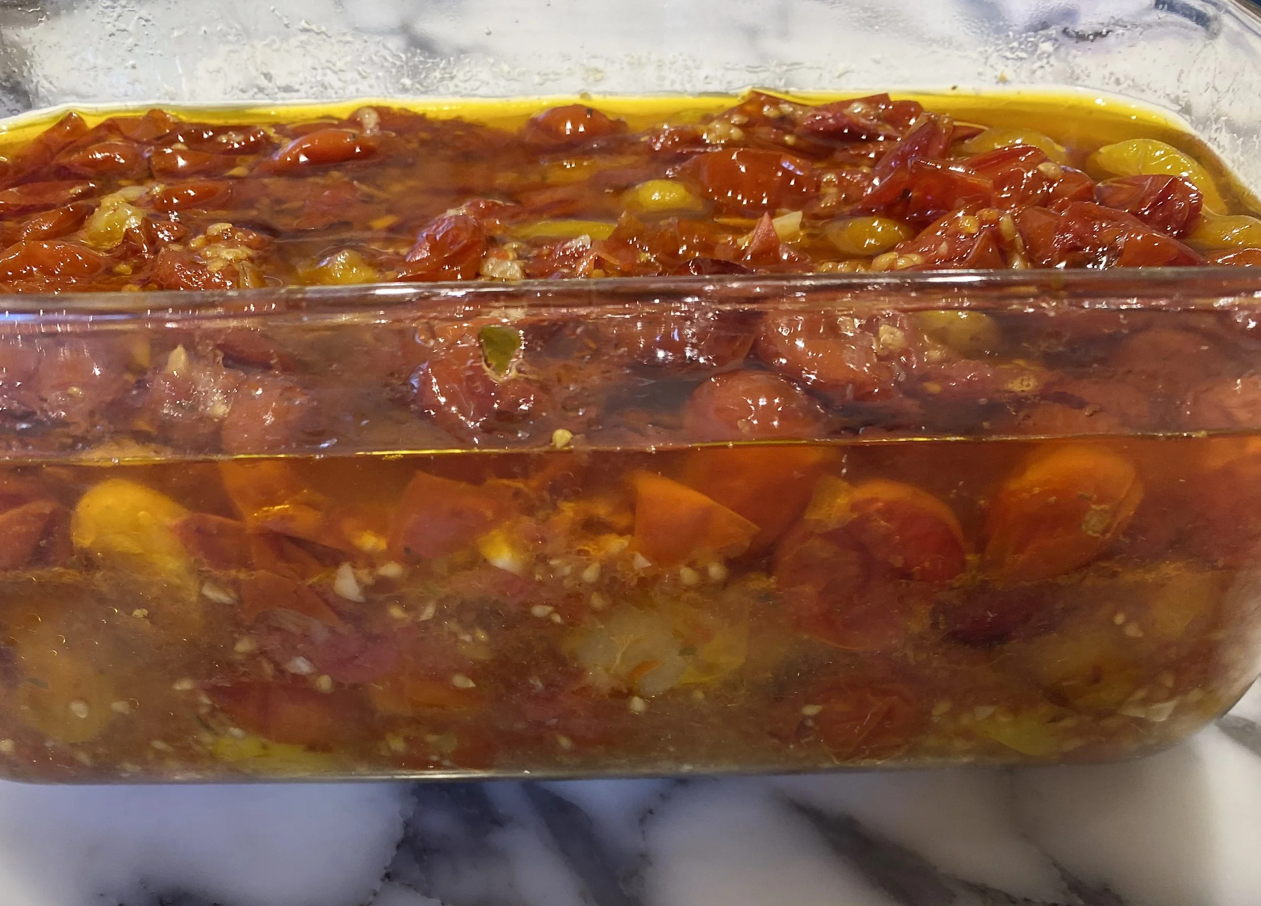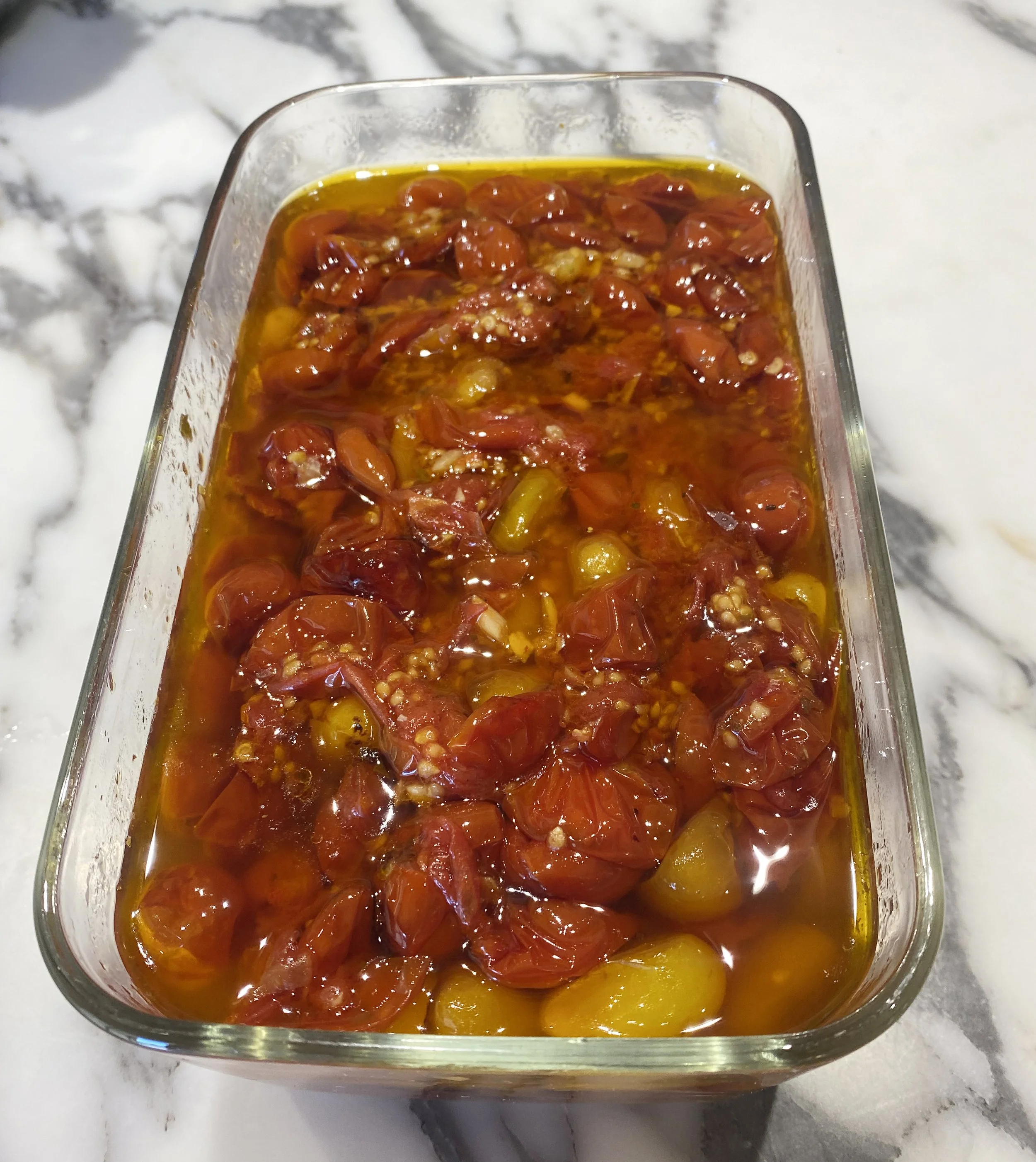 Is your garden suddenly overflowing with cherry tomatoes? This summery compote is your secret weapon. Keep it on hand for bruschetta; dollop on top of hummus; whisk the tomato-infused olive oil into dressings; toss it warm with pasta, basil, toasted pine nuts, and Parmesan; drizzle over grilled vegetables. It will keep refrigerated in a closed container for days. The recipe was developed for and featured on My Cortona Blog.
