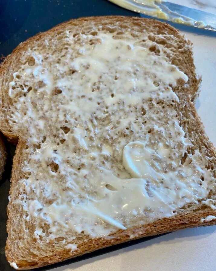 Place the other slice of bread on top, with the mayonnaise side facing up. Carefully turn sandwich over and butter the top side of the bread. Having one side buttered and the other with mayonnaise creates a crunchy, crispy, flavorful top without the butter overwhelming the cheese.