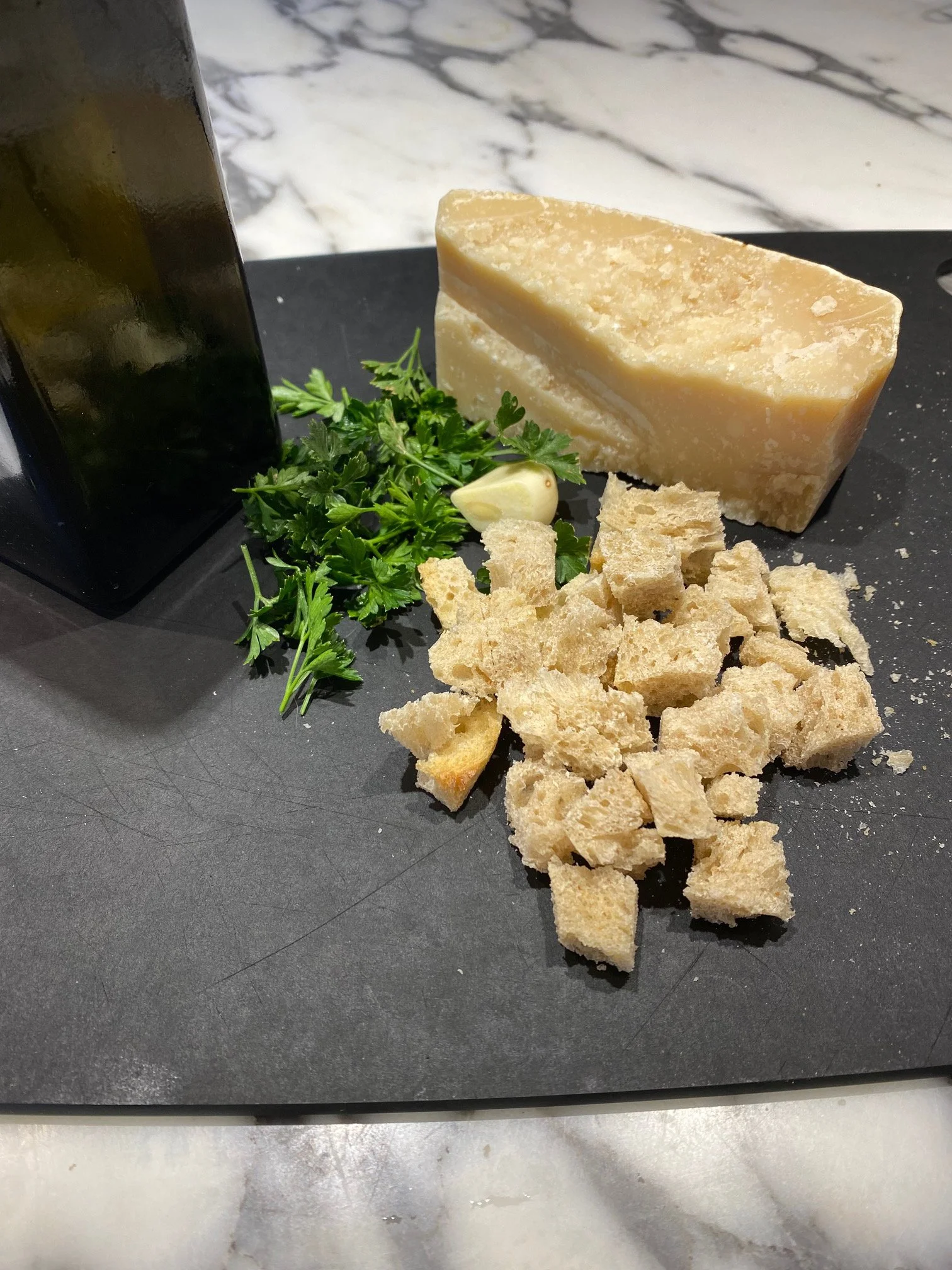 Mix breadcrumbs, parsley, garlic, and Parmesan in a small bowl. Distribute evenly over the top of the casserole dish. Drizzle with olive oil and immediately bake for 30 to 45 minutes until bubbly and the topping is browned. Let rest for 5 to 10 minutes before serving.
