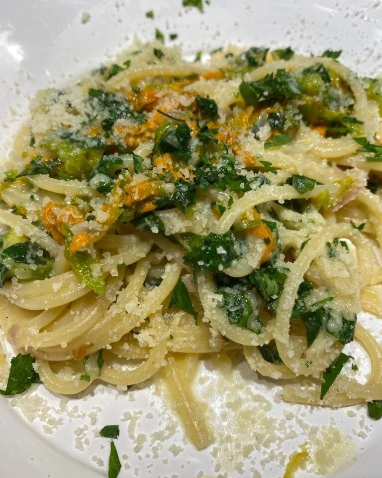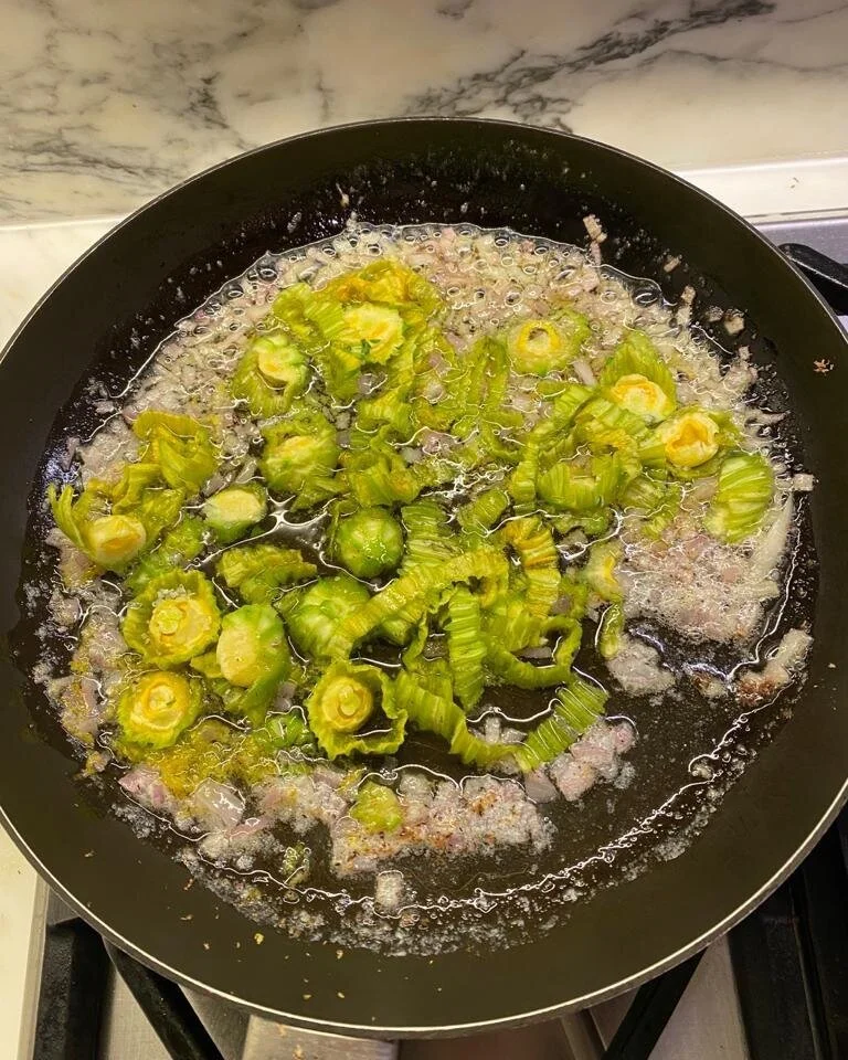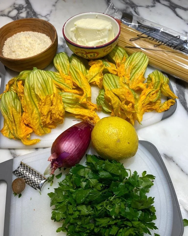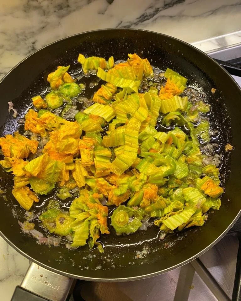 Living in Italy has its advantages, like being able to purchase squash blossoms at my local grocery store. On Saturday, returning to my stone farmhouse in Cortona with a small bundle of the delicate blossoms, I wondered how best to prepare them for Sunday dinner. (The blossoms refrigerate for a day when placed in a sealed container with damp paper towels.) Although the general consensus is to stuff and fry them, frying for just one person feels somewhat lonely. Friend and chef Stephan Pyles suggested a crab filling, but, alas, no crab in my refrigerator, and on Sunday, Tuscany was declared a Covid Red Zone with all travel (even to the grocery store) highly restricted. Since pasta is Italy’s national dish, and given my ingredients on hand, I created this fast, simple pasta, which may now become a treasured staple.