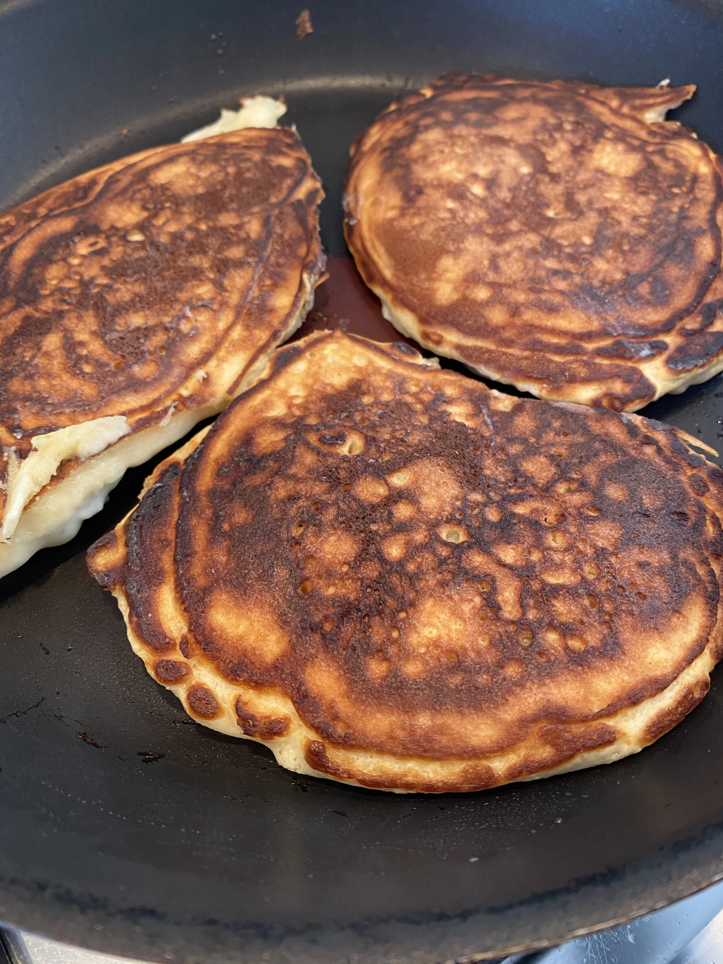 In this time of isolation, alone in a foreign city, I find myself longing for tangible ways to connect with my far-flung family. Food has always been a True North in our household, and pancakes reach back to my very beginnings. I think they may have been my first solid food. My children certainly shoveled fistfuls into their squawking mouths as infants. It is no wonder that, a few nights ago, I dreamt of pancakes—American style, not the flat Dutch crepe version.
