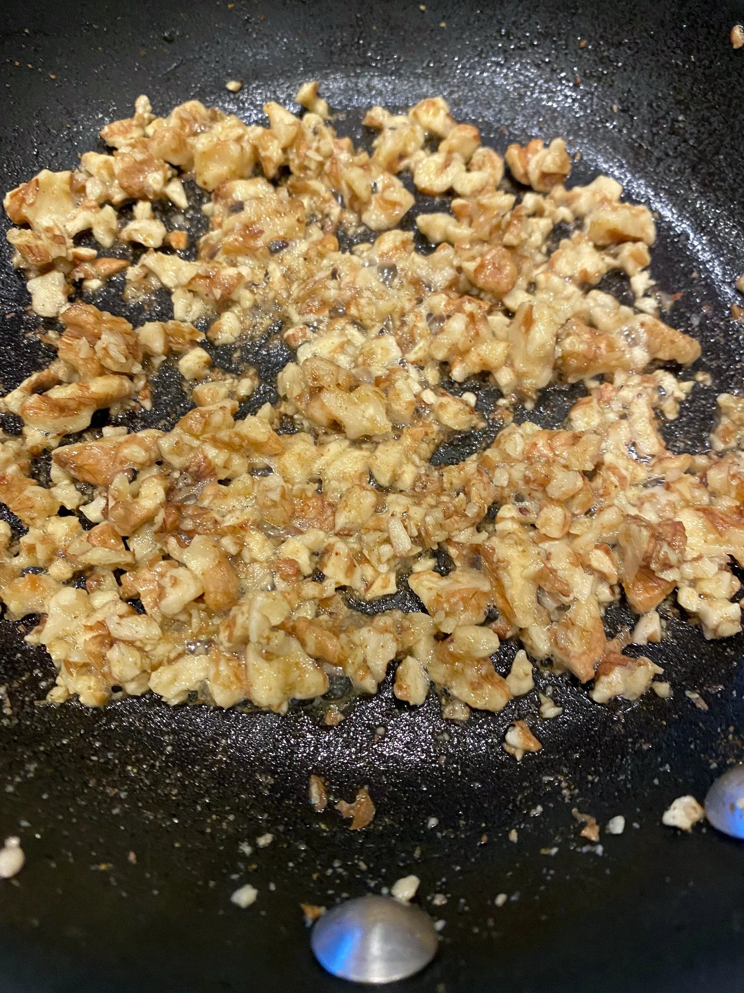 NOTE: the photos show the breadcrumbs and walnuts toasted separately, but I have found you can toast both at the same time and it saves some time and clean-up. Either way works!
